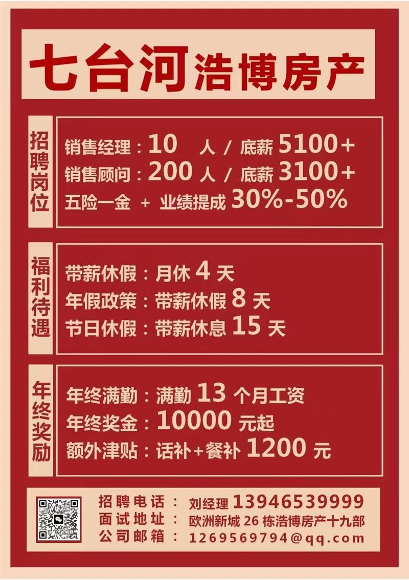 [煙花]七臺(tái)河浩博房產(chǎn)招聘[煙花]