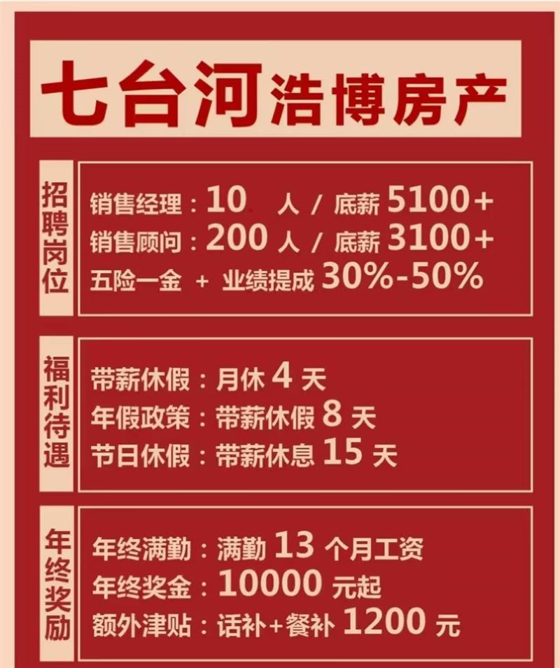 [煙花]七臺河浩博房產(chǎn)招聘[煙花]