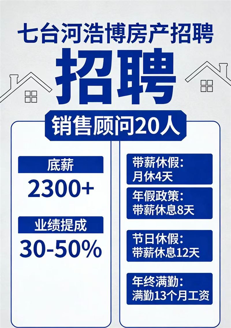 [煙花]七臺(tái)河浩博房產(chǎn)北岸店招聘[煙花]